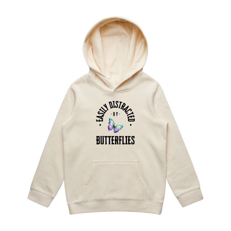 Let your little one showcase their love for adorable butterflies with our charming “Distracted by Butterflies” kids’ hoodie!