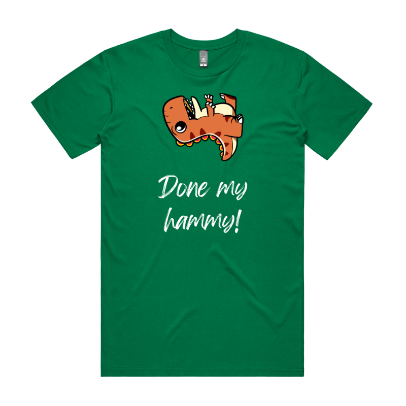 Step into a world of prehistoric humour with our “Done My Hammy Dinosaur” t-shirt! This fun design features a dinosaur in the midst of a Jurassic-sized dilemma—struggling with a torn hamstring.