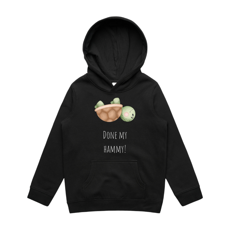 Dive into a world of whimsy with our delightful ‘Done My Hammy’ Turtle Youth Hoodie!